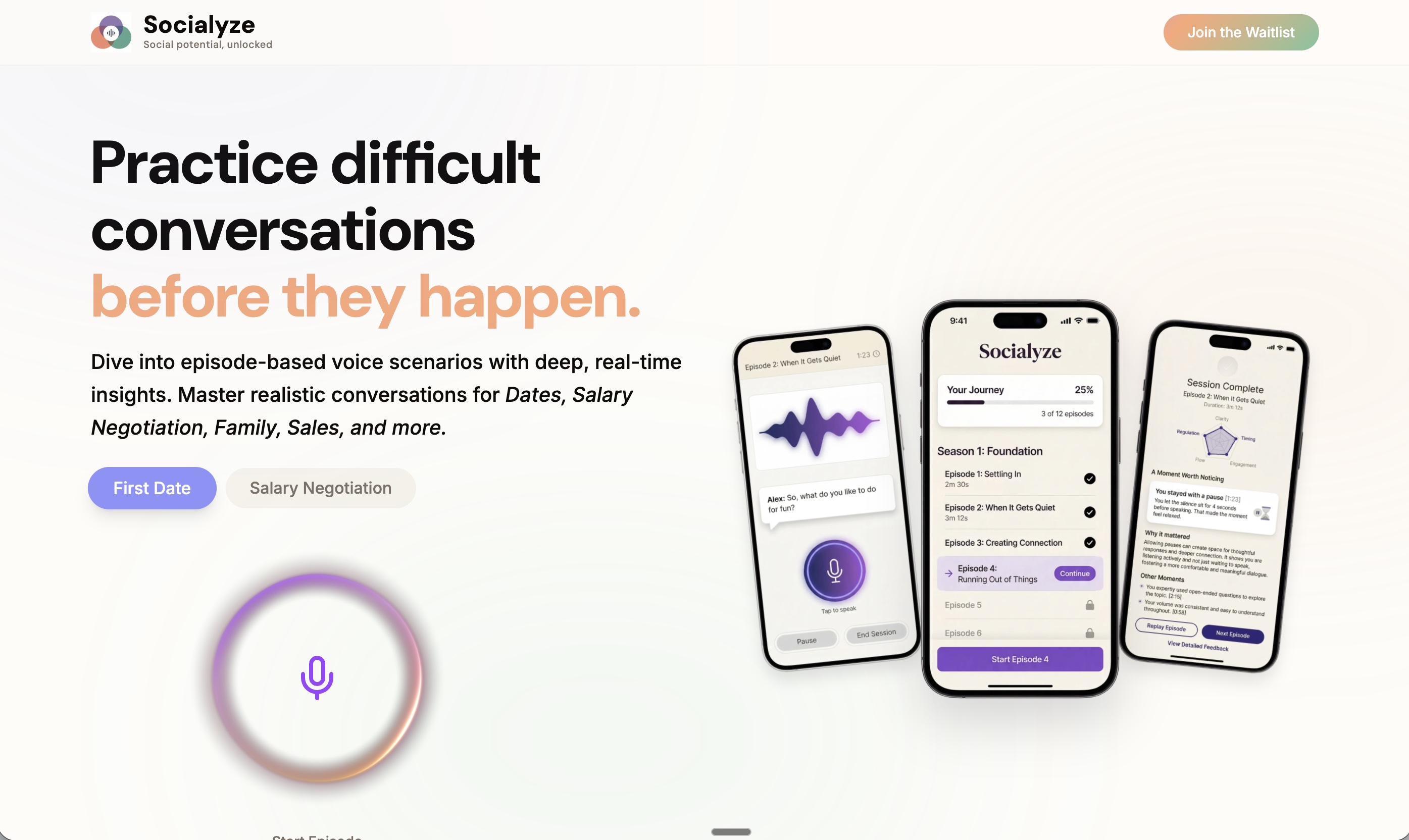 People often struggle with difficult social situations — salary negotiations, first dates, family conversations, sales pitches. There was no safe way to practice these conversations with realistic, real-time feedback.